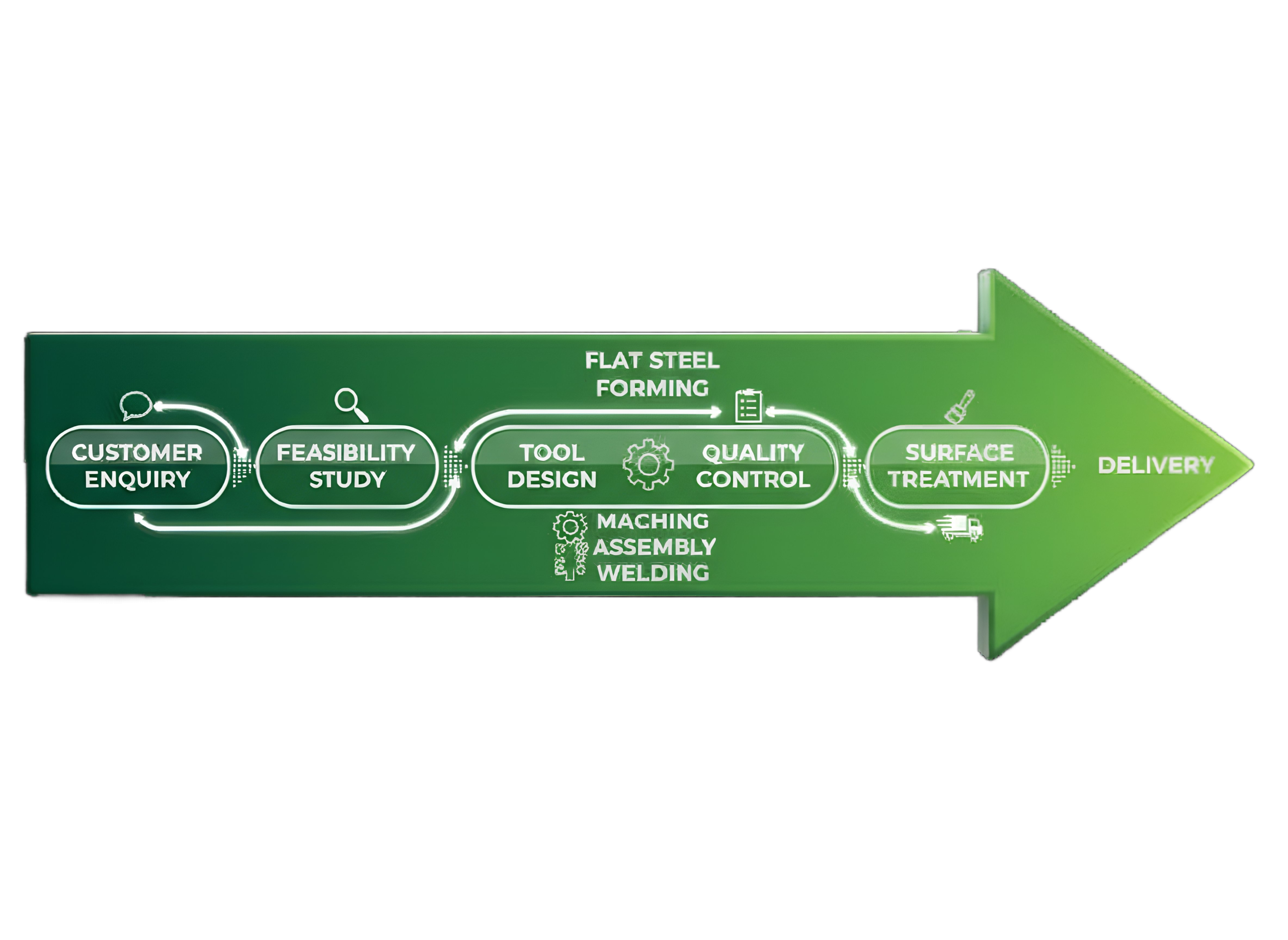 Con un reparto moderno e costantemente aggiornato, mettiamo a disposizione dei nostri clienti 17 presse, linee di assemblaggio, impianti di saldatura robotizzati e filettatrici automatiche. Ogni processo produttivo è integrato e monitorato in tempo reale tramite software per la verifica, anche da remoto, di efficienze, causali di fermo, eventi e statistiche in generale.